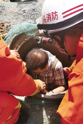 7月9日上午,石拐區(qū)公安分局后營子派出所接到110指令,稱花舞人間西側(cè)有一男子墜入管道井。接到指令后,民警立即與落井男子取得聯(lián)系,詢問其傷情后,立刻驅(qū)車趕往現(xiàn)場。通過落井男子描述的地點(diǎn)及參照物,民警第一時間在包白公路修路段東側(cè)找到了落井男子。