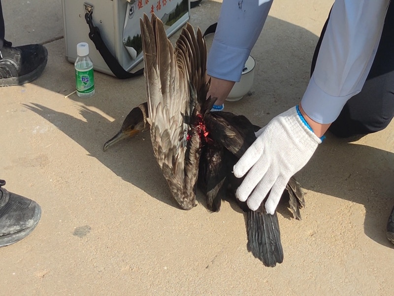 鸕鶿的翅膀嚴(yán)重受傷、無法飛行