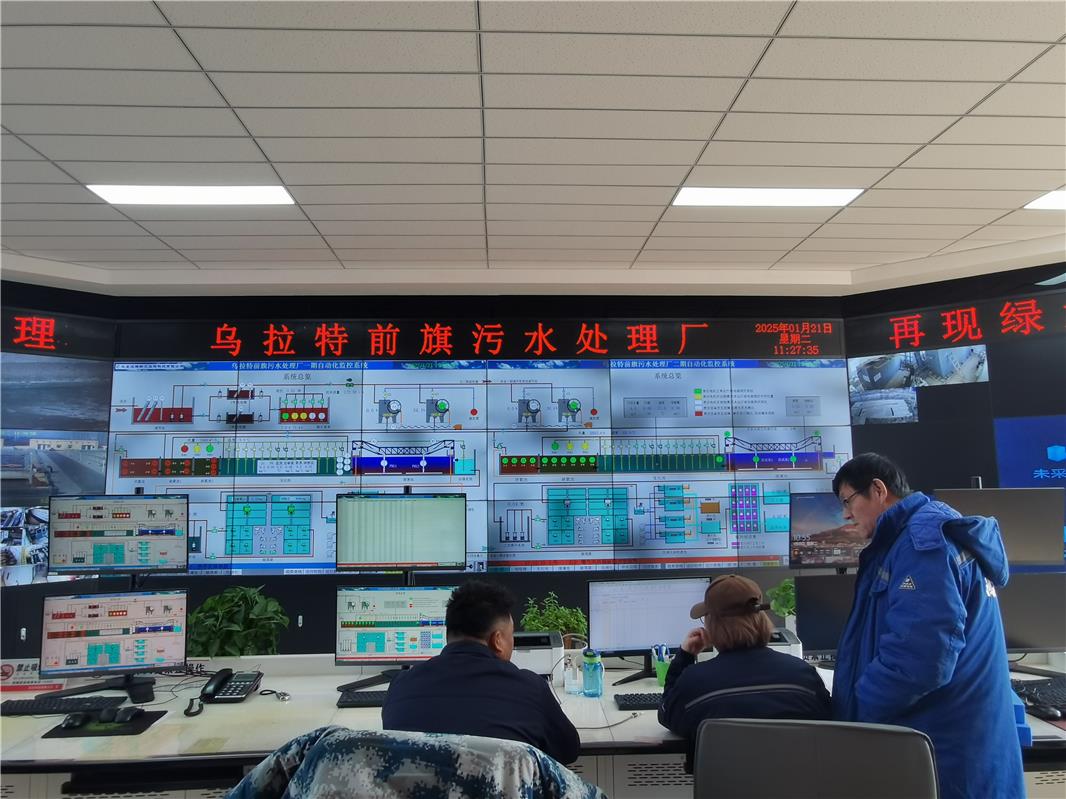 2月18日,記者走進(jìn)巴彥淖爾市烏拉特前旗鴻德污水處理廠總控室,大屏幕上清晰展示著從預(yù)處理到深度處理再到消毒等污水處理全過程。廠區(qū)內(nèi)相關(guān)設(shè)備的運(yùn)行狀態(tài),都經(jīng)過嚴(yán)格的智能化在線監(jiān)測(cè)。
