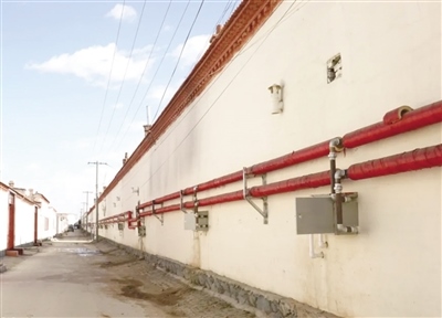 在臺閣牧鎮(zhèn)沙家營村,記者看到供熱管網改造施工時開挖的街巷已完成路面硬化;換熱站內運轉的機器隆隆作響,輸送熱源的管道摸起來十分燙手;在成排的居民房屋后墻整齊地安裝了包裹保溫材料的供熱管道和計量表箱,暖氣經由這些管道輸送到各家各戶。