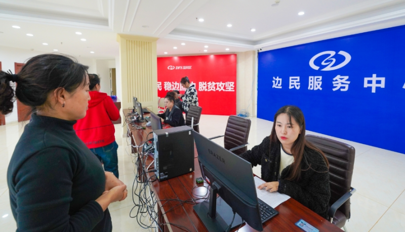 圖為邊民在滿洲里中俄互市貿易區(qū)進行交易申報。