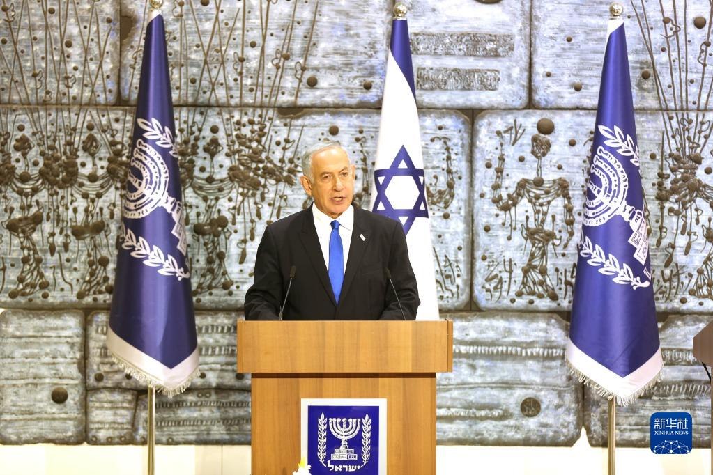 11月13日,以色列前總理內(nèi)塔尼亞胡在以色列總統(tǒng)府舉行的組建新政府授權(quán)儀式上發(fā)表講話。新華社記者王卓倫攝