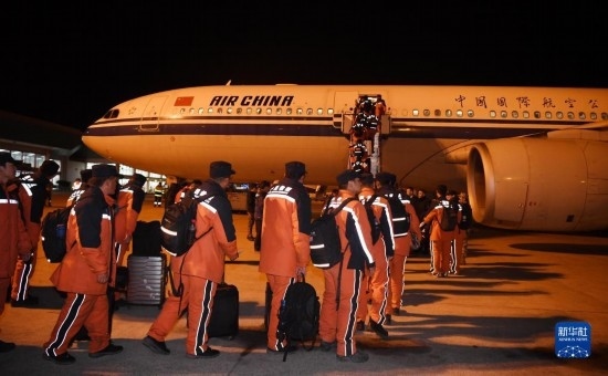 中國赴土耳其開展國際救援的82名隊員16日從阿達(dá)納省阿達(dá)納國際機(jī)場乘坐國航包機(jī)回國。中國香港特區(qū)救援隊同機(jī)返回。