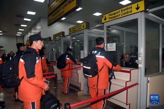 2月16日,中國救援隊隊員在土耳其阿達(dá)納國際機(jī)場乘坐國航包機(jī)回國。