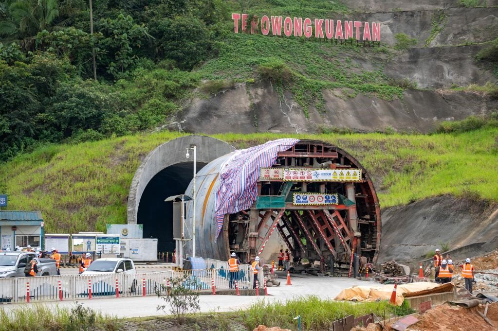這是3月6日在馬來(lái)西亞彭亨州拍攝的馬來(lái)西亞?wèn)|海岸鐵路(馬東鐵)關(guān)丹隧道施工現(xiàn)場(chǎng)。