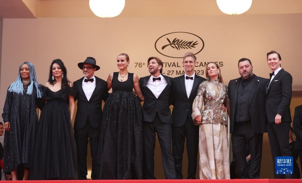 5月16日,在法國戛納舉行的第76屆戛納國際電影節(jié)上,主競賽單元評審團主席、瑞典導演魯本·奧斯特倫德(右四)攜眾評委亮相開幕式紅毯。