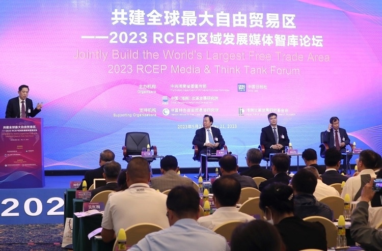 人民網(wǎng)???月21日電 (記者苑基榮)《區(qū)域全面經(jīng)濟(jì)伙伴關(guān)系協(xié)定》(以下簡(jiǎn)稱RCEP)正式生效實(shí)施一年多來(lái),其促進(jìn)區(qū)域貿(mào)易投資增長(zhǎng)與經(jīng)濟(jì)復(fù)蘇的紅利不斷釋放。5月21日,中共海南省委宣傳部、中國(guó)日?qǐng)?bào)社、中國(guó)(海南)改革發(fā)展研究院在海口共同主辦“共建全球最大自由貿(mào)易區(qū)——2023 RCEP區(qū)域發(fā)展媒體智庫(kù)論壇”。來(lái)自中國(guó)、韓國(guó)、日本、新加坡、菲律賓、老撾、緬甸、柬埔寨、馬來(lái)西亞、印度尼西亞、澳大利亞、英國(guó)等國(guó)家的主流媒體、智庫(kù)人士以及國(guó)際組織、駐華使館官員和企業(yè)界共450余位代表參加本次論壇,共同圍繞“共建全球最大自由貿(mào)易區(qū)”分享觀點(diǎn)、交流思想,為推動(dòng)區(qū)域交流合作積極建言獻(xiàn)策。