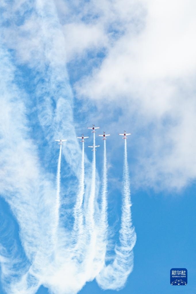 5月23日,在馬來(lái)西亞蘭卡威舉行的第16屆蘭卡威國(guó)際海事和航空展上,飛行表演隊(duì)進(jìn)行特技飛行表演。