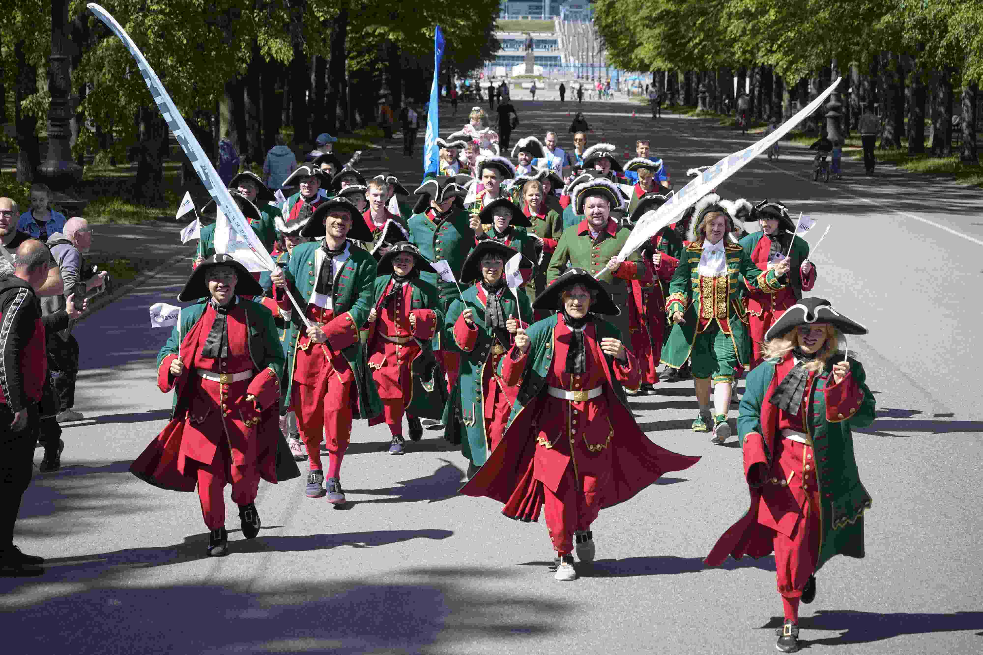 當(dāng)?shù)貢r間2023年5月28日,俄羅斯圣彼得堡,人們身著傳統(tǒng)服飾慶祝圣彼得堡建城320周年。 視覺中國