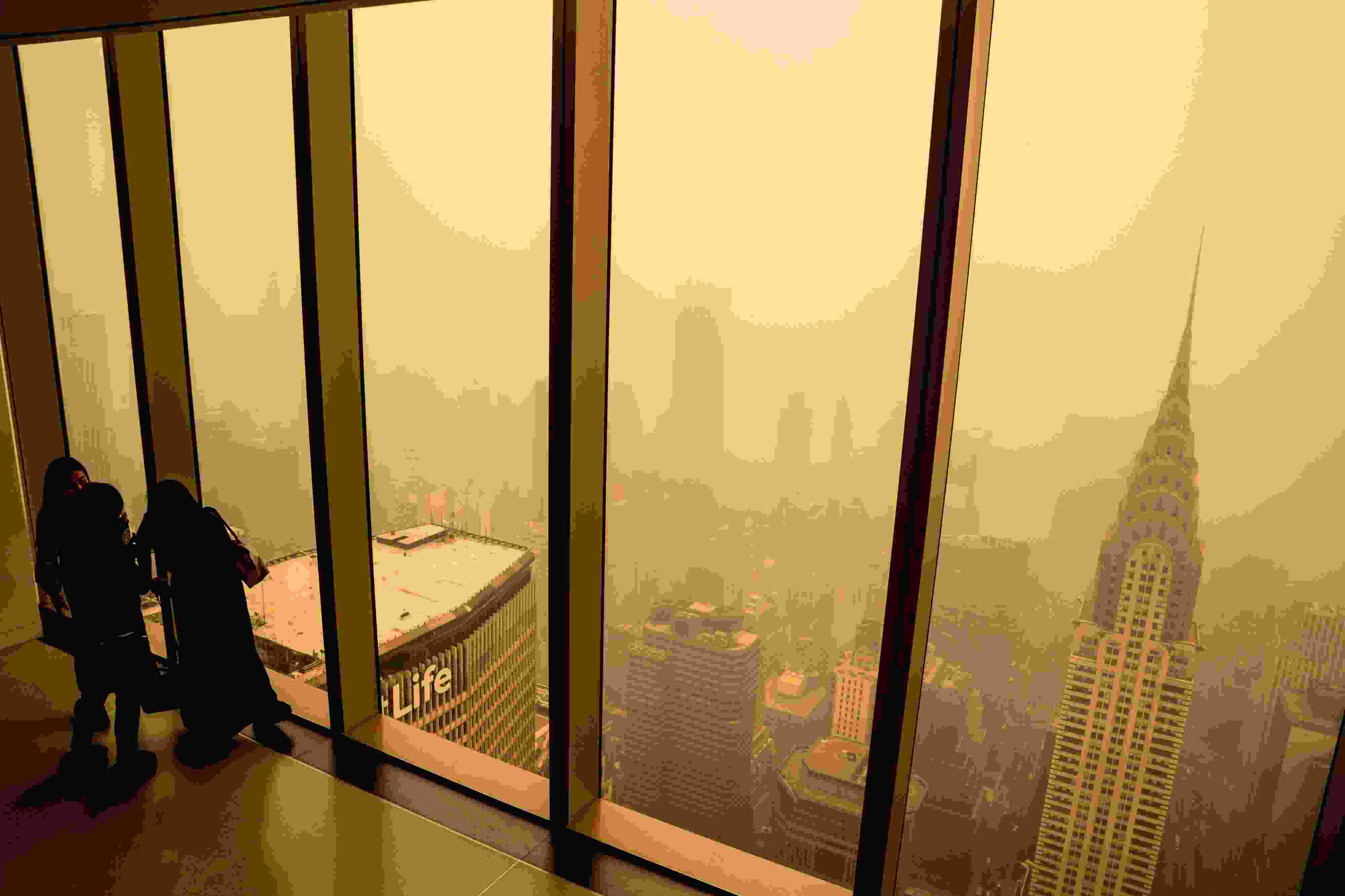 當(dāng)?shù)貢r間2023年6月7日,受加拿大野火煙霧持續(xù)南下影響,美國紐約籠罩在“橙色霧霾”中。當(dāng)天,紐約成為全球空氣污染最嚴重的城市。 視覺中國