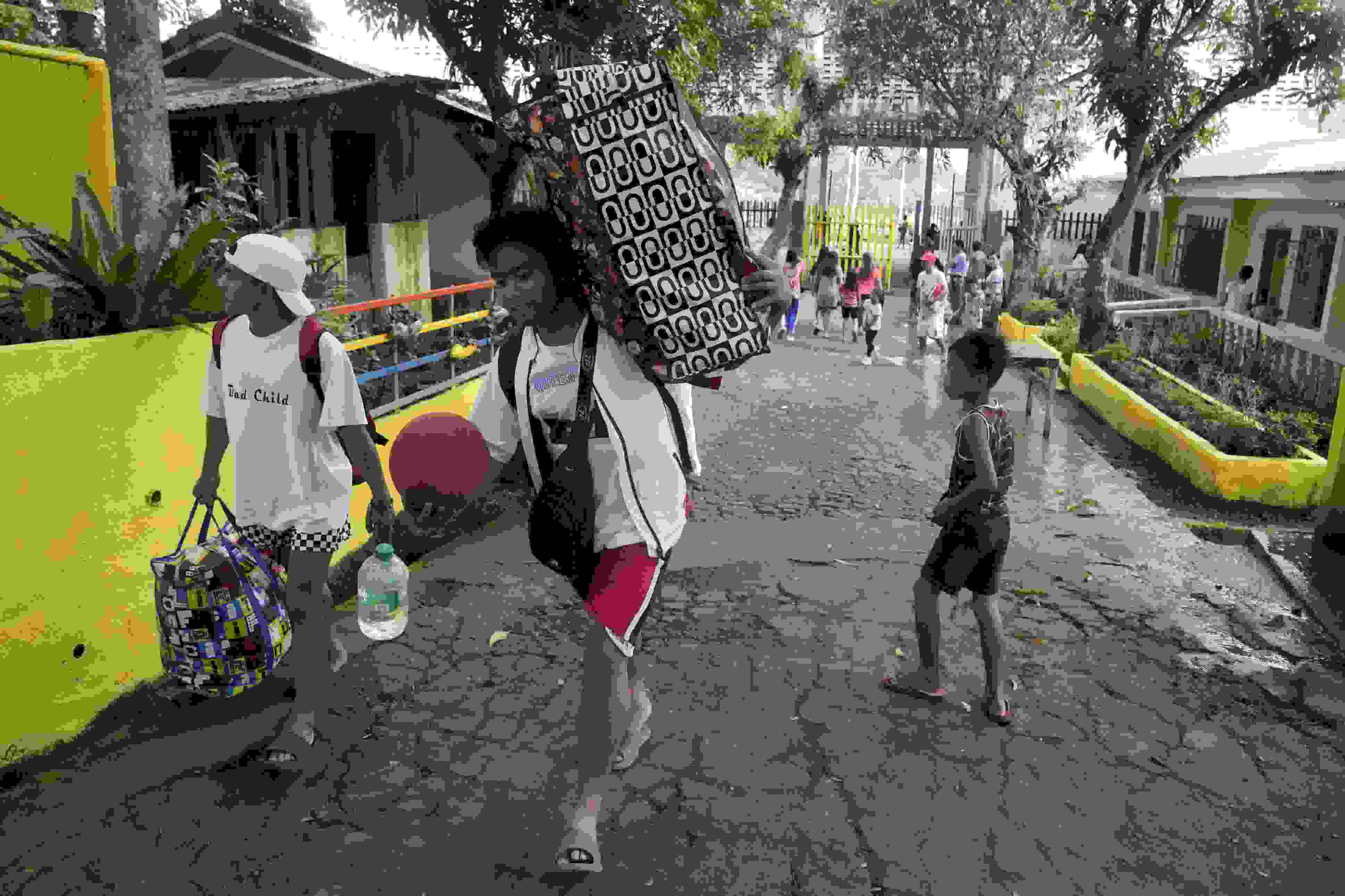 當(dāng)?shù)貢r(shí)間2023年6月10日,菲律賓阿爾拜省,撤離人員帶著他們的物品抵達(dá)臨時(shí)安置點(diǎn)。 視覺中國(guó)