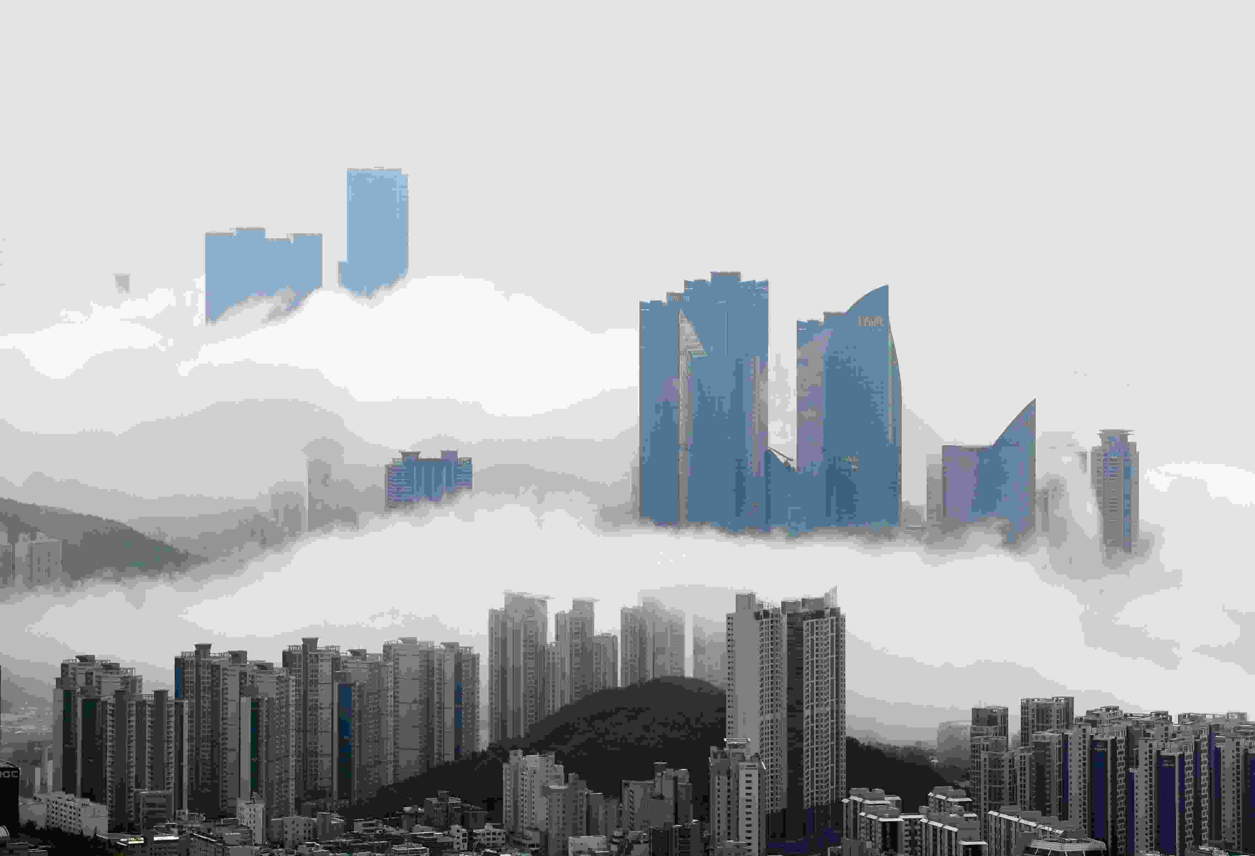 當?shù)貢r間2023年6月12日,韓國釜山,廣安大橋一帶海霧彌漫,蔚為壯觀。 視覺中國
