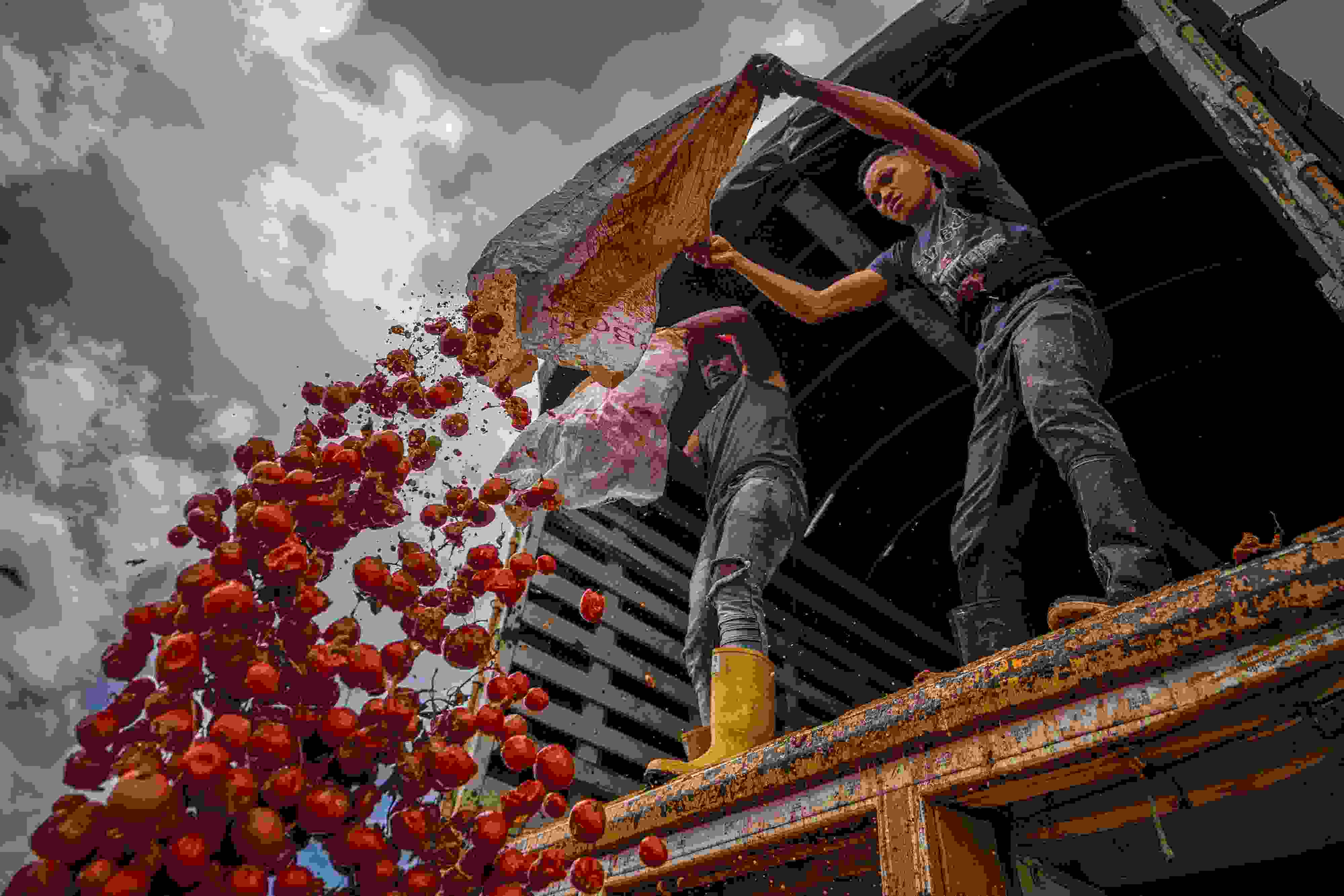 哥倫比亞民眾參加“西紅柿大戰(zhàn)”
