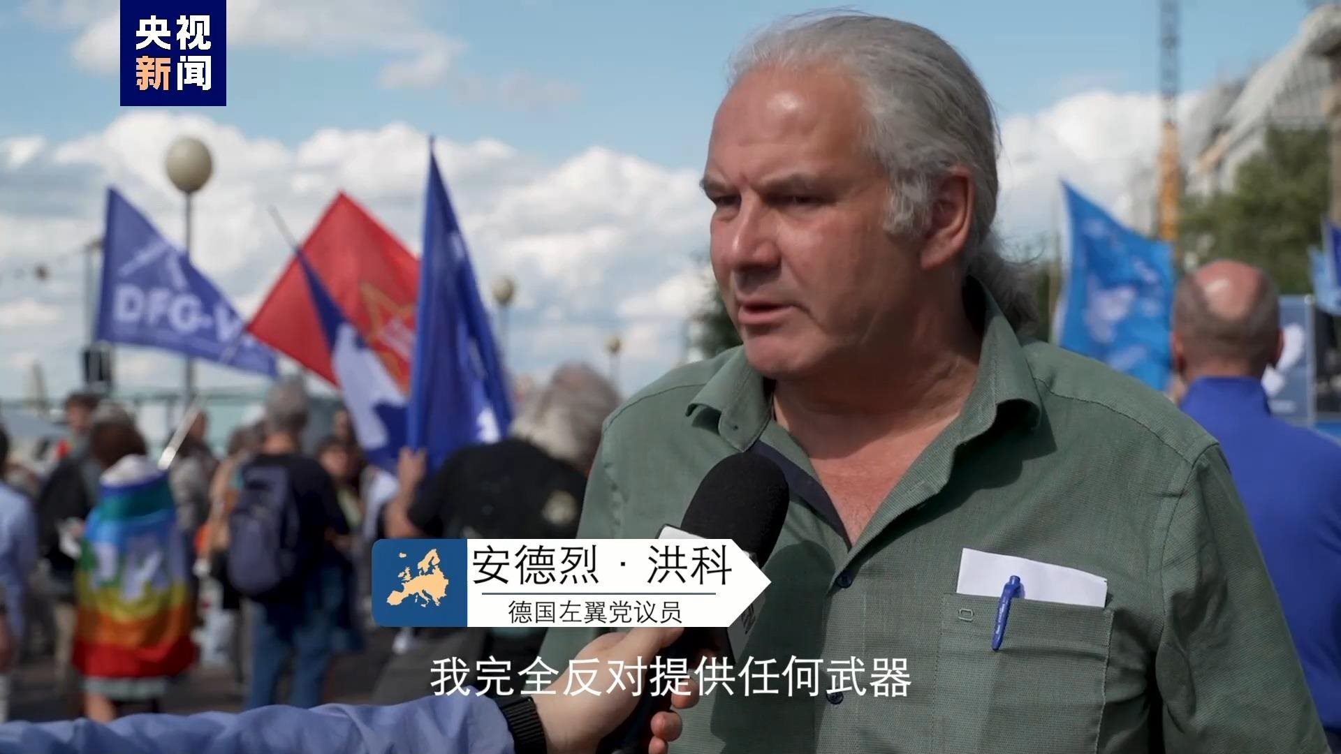 德國民眾 沃爾夫?qū)?/strong>:我們在這里(柏林)要求立即實現(xiàn)?;稹W鳛楹推街髁x者我們反對北約,反對軍事手段。軍事手段不是俄烏沖突的解決方案。俄烏沖突只能通過外交手段解決。