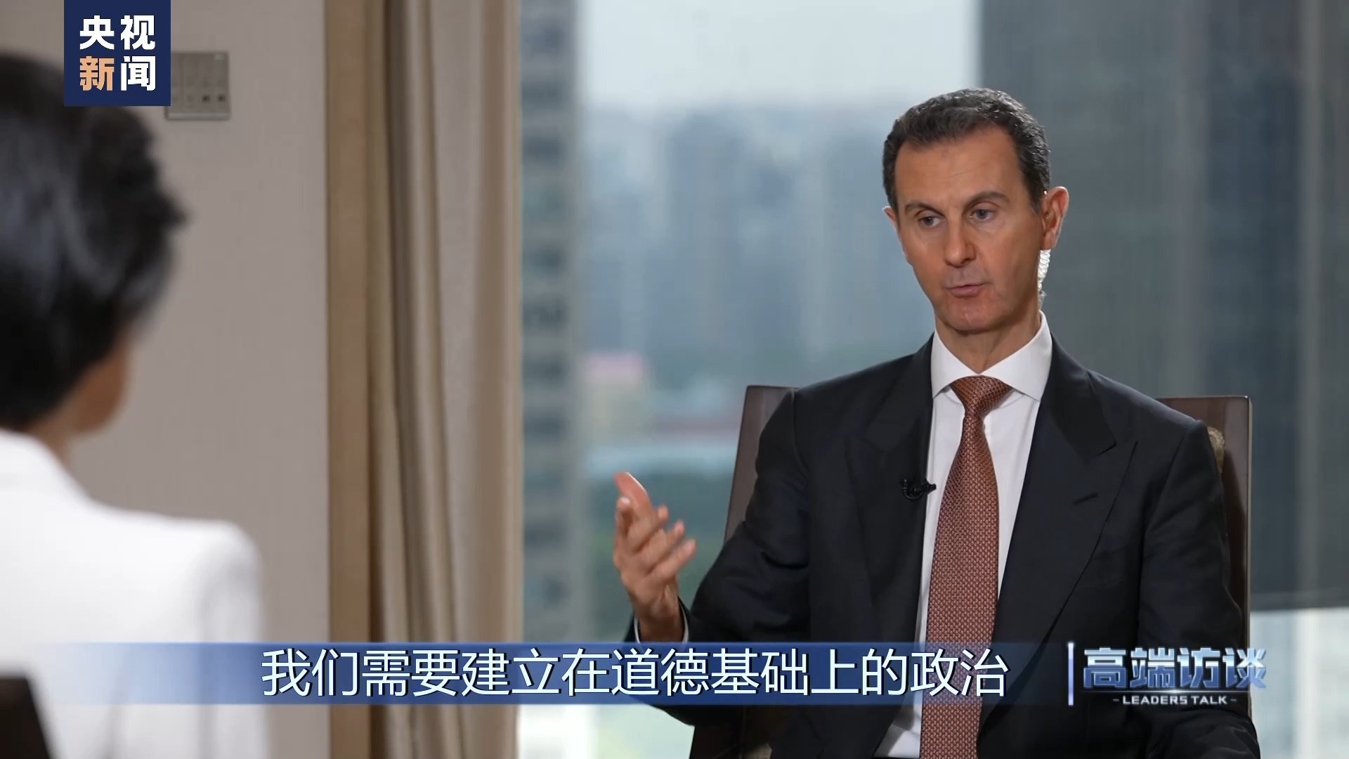 巴沙爾:感謝你給我機(jī)會(huì),通過你們頻道、你們節(jié)目向中國人民說這些話。我想向中國人民表示祝賀,祝賀你們過去幾十年取得的成就。事實(shí)證明,中國人民是偉大的人民。我不是嘴上說說,而是事實(shí)的確如此。我們祝愿中國實(shí)現(xiàn)國家愿景,在國際上,中國的愿景也是當(dāng)今世界大多數(shù)國家的愿景。謝謝你的采訪!