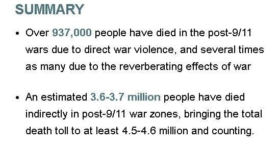 耿直哥查詢公開資料發(fā)現(xiàn),這個450萬的死亡數(shù)字出自布朗大學沃森國際與公共事務學院一項名為“戰(zhàn)爭的代價”的研究項目。該項目對過去22年遭美國戰(zhàn)爭荼毒的阿富汗、伊拉克、利比亞、索馬里、敘利亞,以及巴基斯坦的部分地區(qū)進行了調查,認為美國的戰(zhàn)爭直接導致93.7萬人死亡,還有大約360-370萬人間接死亡。