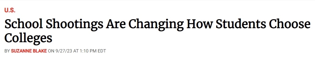 也是由于校園槍擊事件的日漸頻繁,美國(guó)學(xué)生選擇大學(xué)的方式也隨之發(fā)生變化。據(jù)美國(guó)《新聞周刊》(News Week)網(wǎng)站27日?qǐng)?bào)道,僅在2023年,全美就發(fā)生了53起校園槍擊事件?!皹屩П┝n案”(Gun Violence Archive)的數(shù)據(jù)顯示,各類(lèi)與槍支有關(guān)的死亡總共有3萬(wàn)多起。
