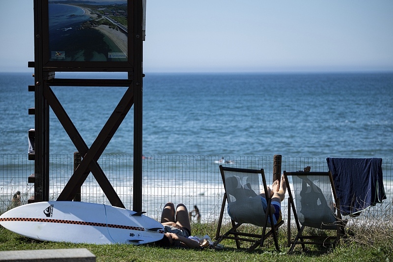 △西班牙多地高溫,人們在海邊納涼。