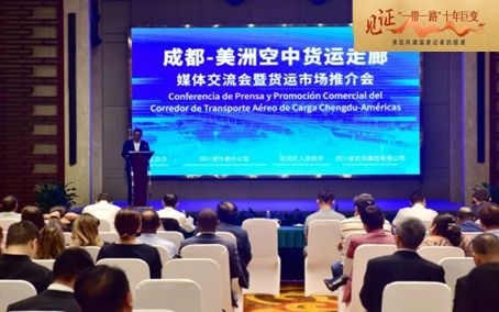 金秋時節(jié),巴西中北部傳媒集團記者拉妮利·維羅索專程赴成都,以現(xiàn)場直播形式報道中國和巴西新開通的國際貨運航線推介會,展示空運來華的拉美特色產(chǎn)品,并采訪巴西駐成都總領(lǐng)事、四川機場集團相關(guān)負責(zé)人。
