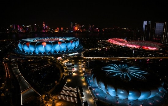 錢塘江畔,杭州奧體中心體育場(chǎng)宛若一朵“大蓮花”。這一場(chǎng)館造型取意于古老絲綢紋理與編織體系,建筑體態(tài)源于錢塘江水的動(dòng)態(tài)。從空中俯瞰,它與亞運(yùn)會(huì)網(wǎng)球項(xiàng)目競(jìng)賽場(chǎng)館“小蓮花”交相輝映,猶如“花”開并蒂,讓人不禁聯(lián)想起“接天蓮葉無窮碧,映日荷花別樣紅”的詩句。