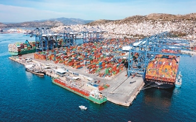 2022年2月19日拍攝的希臘比雷埃夫斯港集裝箱3號(hào)碼頭。作為共建“一帶一路”倡議的典范項(xiàng)目,希臘比雷埃夫斯港年貨物吞吐量達(dá)500萬(wàn)標(biāo)箱以上。新華社發(fā)