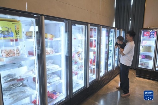 工作人員在第二十三屆中國國際投資貿易洽談會中印尼“兩國雙園”展位開展直播活動(9月9日攝)。