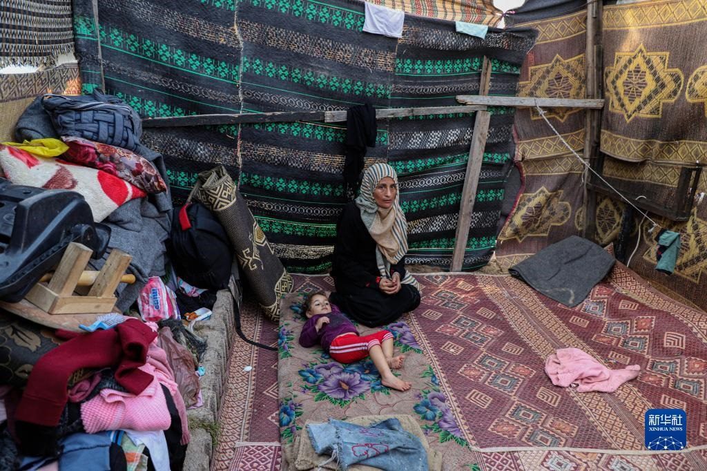 11月6日,人們在加沙地帶南部城市汗尤尼斯的一處臨時難民營內(nèi)休息。巴勒斯坦加沙地帶衛(wèi)生部門6日發(fā)表聲明說,新一輪巴以沖突爆發(fā)以來,以色列軍隊襲擊加沙地帶已造成超過1萬人死亡。新華社發(fā)(里澤克·阿卜杜勒賈瓦德攝)
