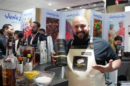 11月7日,展商在第六屆進(jìn)博會(huì)國(guó)家展委內(nèi)瑞拉展臺(tái)展示朗姆酒。新華社記者 李夢(mèng)嬌 攝