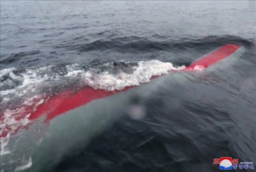 去年3月,朝鮮進行了一系列軍事訓練活動,包括新型水下攻擊武器系統(tǒng)試驗,其中,“海嘯”的核無人潛水攻擊艇首次亮相。試驗在朝鮮咸鏡南道利原郡海岸進行,在80米至150米深度潛航了約59小時,最后到達假想敵人港口的洪原灣水域目標點爆炸。一個月后朝鮮公開了“海嘯-2”型核無人潛水攻擊艇,朝方稱,該艇進行了71小時、1000千米的潛航試驗,驗證了潛水式戰(zhàn)略武器系統(tǒng)的可靠性和致命打擊能力。