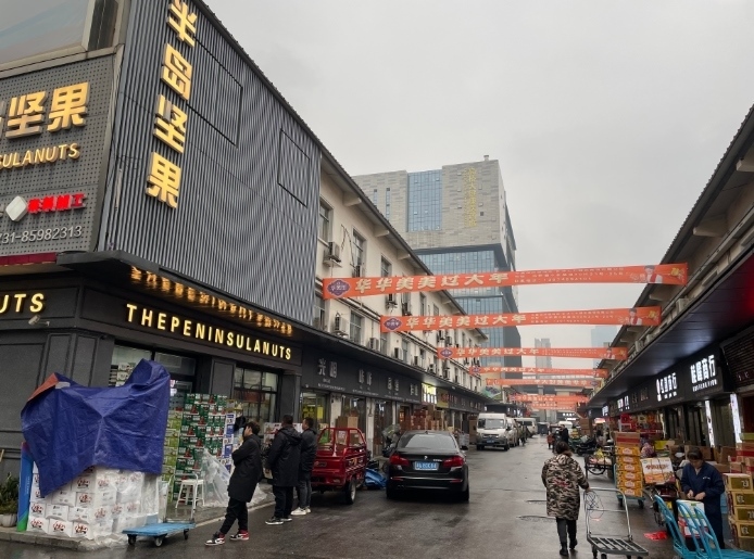 這是湖南長沙高橋大市場堅果經銷商李海麗在整理貨物。新華社記者 余春生 攝