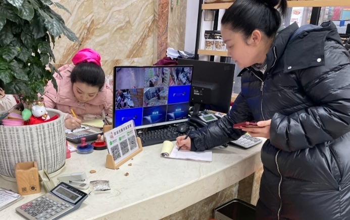 這是湖南長沙高橋大市場堅果經銷商李海麗(右一)在聯(lián)系物流。新華社記者 余春生 攝
