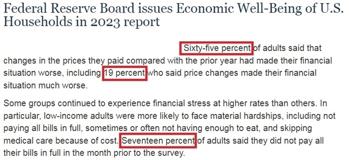 當?shù)貢r間5月21日,美聯(lián)儲發(fā)布的《2023年美國家庭經(jīng)濟狀況報告》顯示,盡管去年通脹有所放緩,但它繼續(xù)對美國人的生計造成影響。