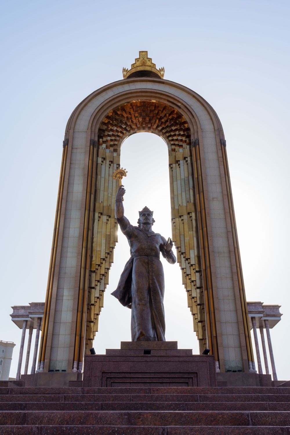 ↑位于杜尚別的索莫尼紀念碑。 新華社記者 周荻瀟 攝