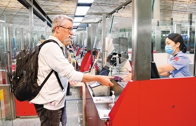 為了能讓外國(guó)旅客在入境第一站就體驗(yàn)到在中國(guó)旅游的便利,一系列免簽政策配套措施不斷創(chuàng)新完善——縮短候檢查驗(yàn)時(shí)間、自助填寫(xiě)申報(bào)表、組建多語(yǔ)種志愿服務(wù)隊(duì)……各口岸邊檢部門(mén)傾力為出入境旅客提供優(yōu)質(zhì)、高效的通關(guān)服務(wù)。國(guó)際航線較多、外籍人員入境量較大的口岸均已開(kāi)展口岸簽證業(yè)務(wù)。今年上半年,全國(guó)移民管理機(jī)構(gòu)簽發(fā)口岸簽證68.6萬(wàn)證次,同比上升267.9%。