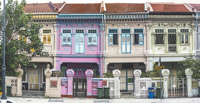 初至新加坡,我用腳步丈量這個(gè)國家,每一步都仿佛踩在歷史與現(xiàn)實(shí)的交匯點(diǎn)上。行至加?xùn)|街區(qū)的如切路,仿佛走進(jìn)時(shí)光的萬花筒,瞬間被頗具歷史感的娘惹建筑環(huán)繞。街道兩旁,色彩斑斕的娘惹排屋(見圖,約翰·西頓·卡拉漢攝,影像中國)如同一幅幅鋪開的絢麗油畫:中式飛檐與歐式廊柱巧妙融為一體;門窗上的雕花精致細(xì)膩,盡顯龍鳳等中國圖案的吉祥寓意、棕櫚紋等馬來元素的自然之美和歐洲巴洛克風(fēng)格的華麗細(xì)節(jié);彩色玻璃在陽光下折射出五彩斑斕的光澤;繁復(fù)的花卉瓷磚如華麗織錦,讓人目不暇接……一步一景,皆散發(fā)著濃郁的南洋風(fēng)情,好似輕吟淺唱一曲悠遠(yuǎn)的歲月之歌。