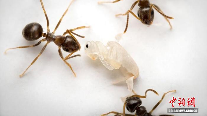 螞蟻檢查幼蟲(圖片來自Christopher D. Pull/奧地利科技學(xué)院)。施普林格·自然 供圖