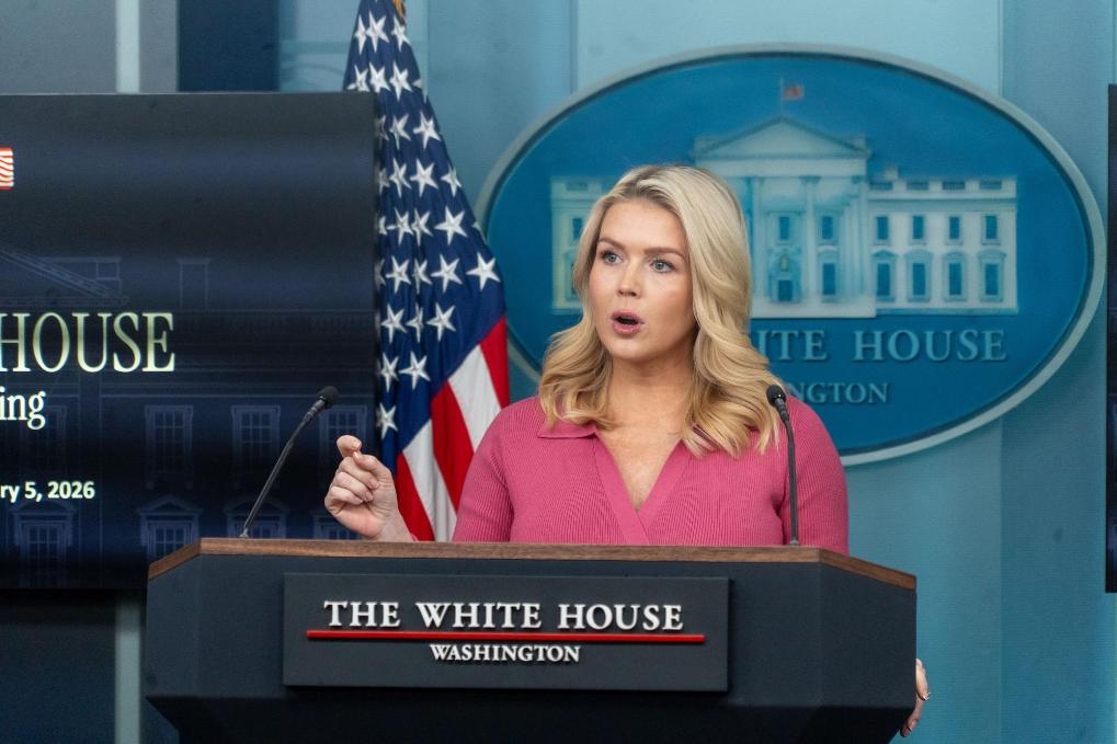 2月5日,在美國(guó)首都華盛頓白宮,白宮新聞秘書(shū)萊維特出席記者會(huì)。新華社發(fā)(李源清攝)
