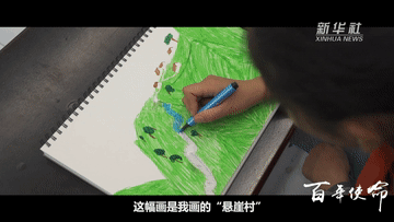在四川大涼山,12歲的額其古伍畫下“懸崖村”之變。從藤梯、鋼梯到樓梯,人民對美好生活的向往,就是中國共產(chǎn)黨的奮斗目標。