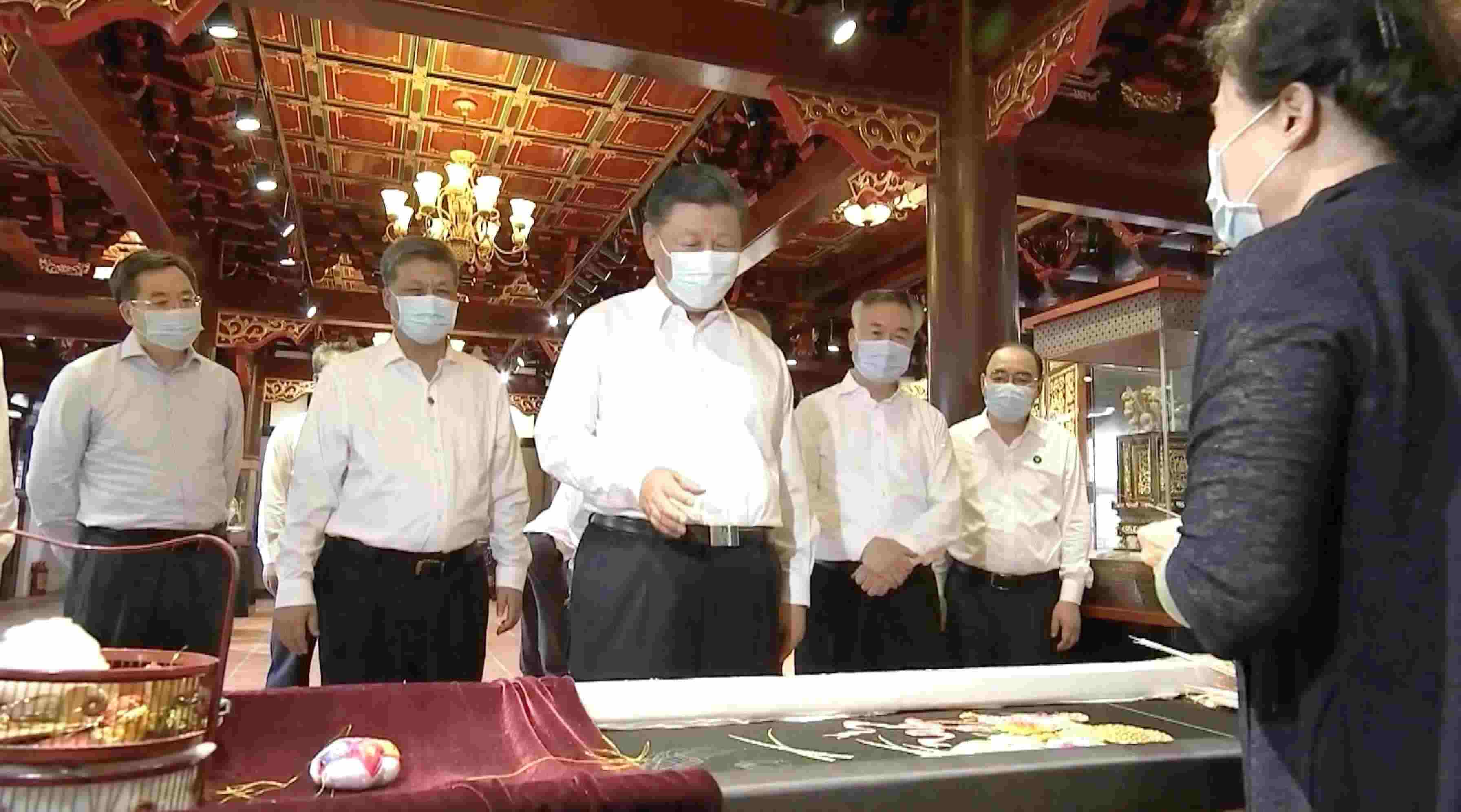 在潮州,總書記叮囑,要加強(qiáng)非物質(zhì)文化遺產(chǎn)保護(hù)和傳承,積極培養(yǎng)傳承人,讓非物質(zhì)文化遺產(chǎn)綻放出更加迷人的光彩;在四川成都戰(zhàn)旗村,總書記察看蜀錦、蜀繡等手工藝品展示,還買下一雙手工制作的唐昌布鞋;在江蘇徐州馬莊村的香包制作室,總書記對非遺傳承人王秀英制作的香包贊不絕口……