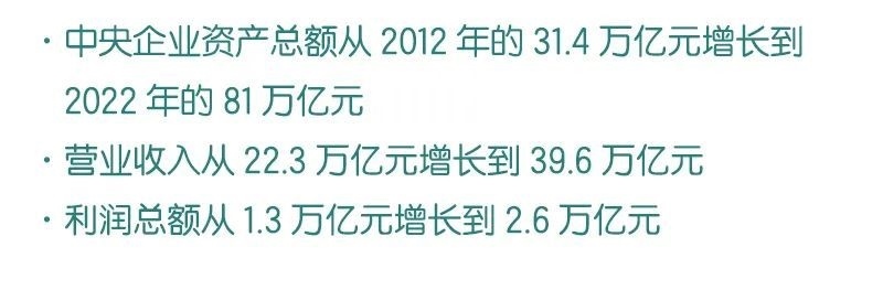 “新時(shí)代10年,國(guó)資央企發(fā)生了根本性、轉(zhuǎn)折性、全局性的重大變化”“國(guó)有企業(yè)和市場(chǎng)經(jīng)濟(jì)更好地實(shí)現(xiàn)了融合,打造了一批現(xiàn)代新國(guó)企”“中央企業(yè)資產(chǎn)總額從2012年的31.4萬(wàn)億元增長(zhǎng)到2022年的81萬(wàn)億元”……國(guó)新辦日前舉行的一場(chǎng)新聞發(fā)布會(huì),傳遞出一系列令人振奮的消息。