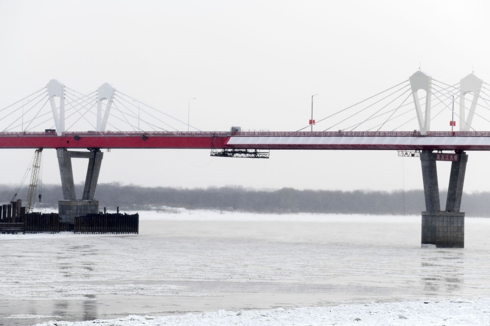↑這是中俄首座跨黑龍江公路大橋黑河-布拉戈維申斯克公路橋。這座大橋是兩國元首共同關(guān)心推動的重大跨境基礎(chǔ)設(shè)施項目,它的開通在中國東北地區(qū)和俄羅斯遠東地區(qū)之間開辟新的國際運輸通道,成為中俄跨境互聯(lián)互通建設(shè)的標志。