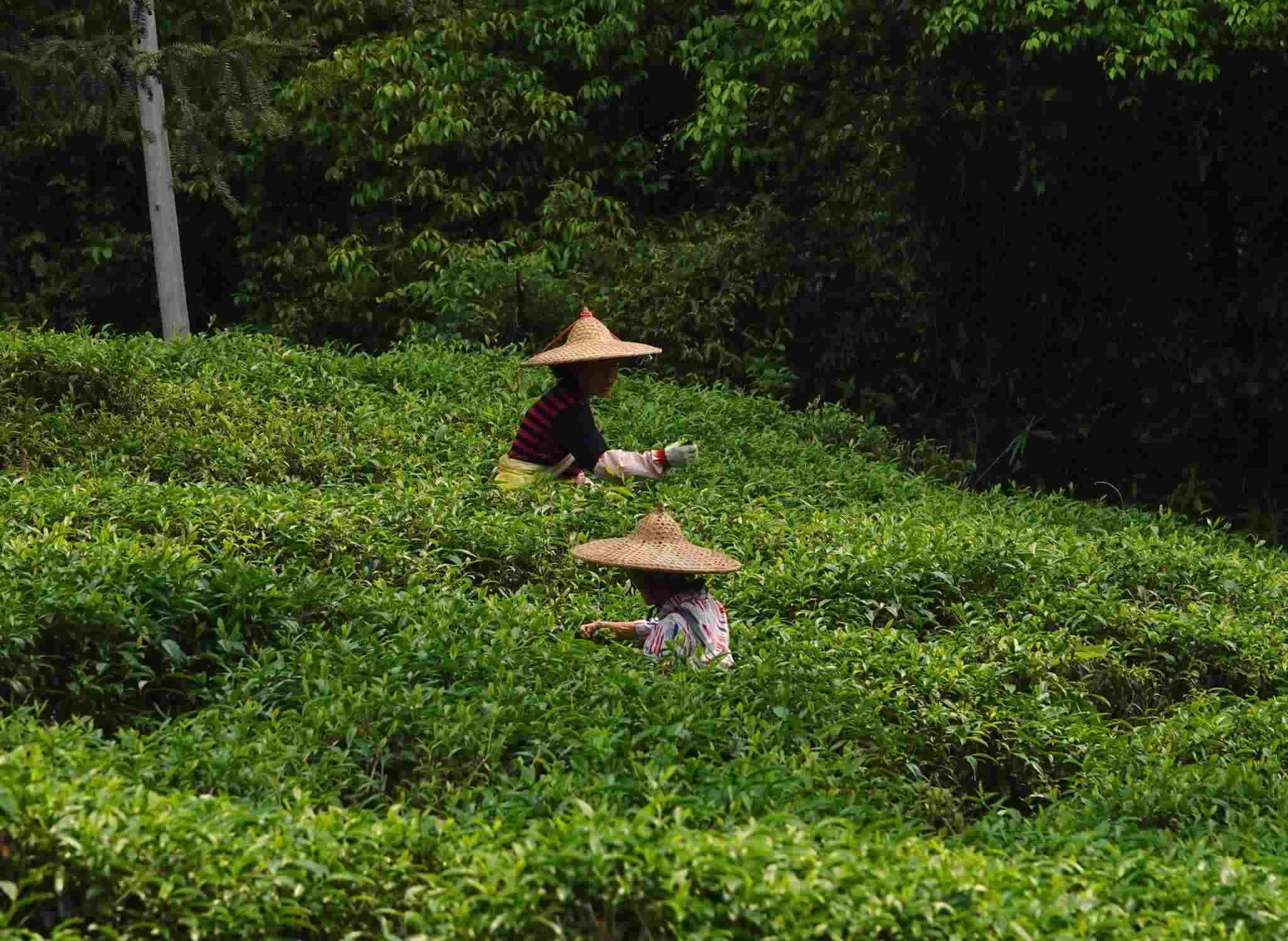 2023年4月13日,廣西賀州,茶鄉(xiāng)昭平縣在持續(xù)了20多天的春雨之后終于放晴,茶農(nóng)上山趕采春茶。視覺(jué)中國(guó)