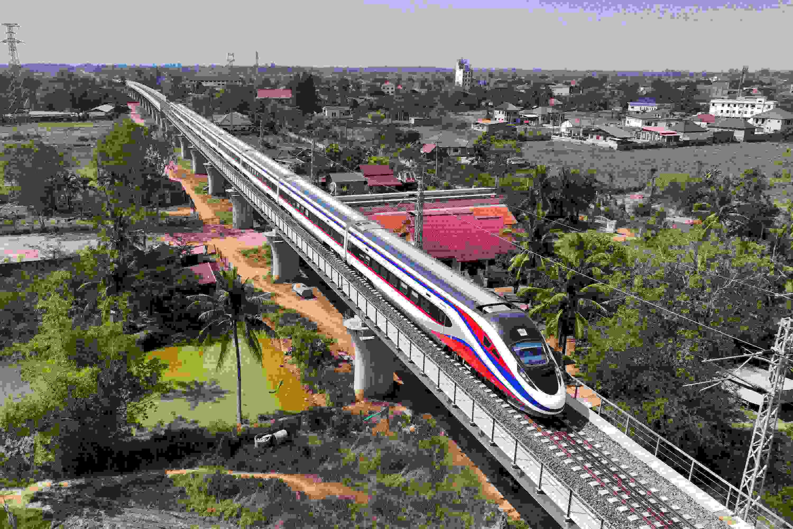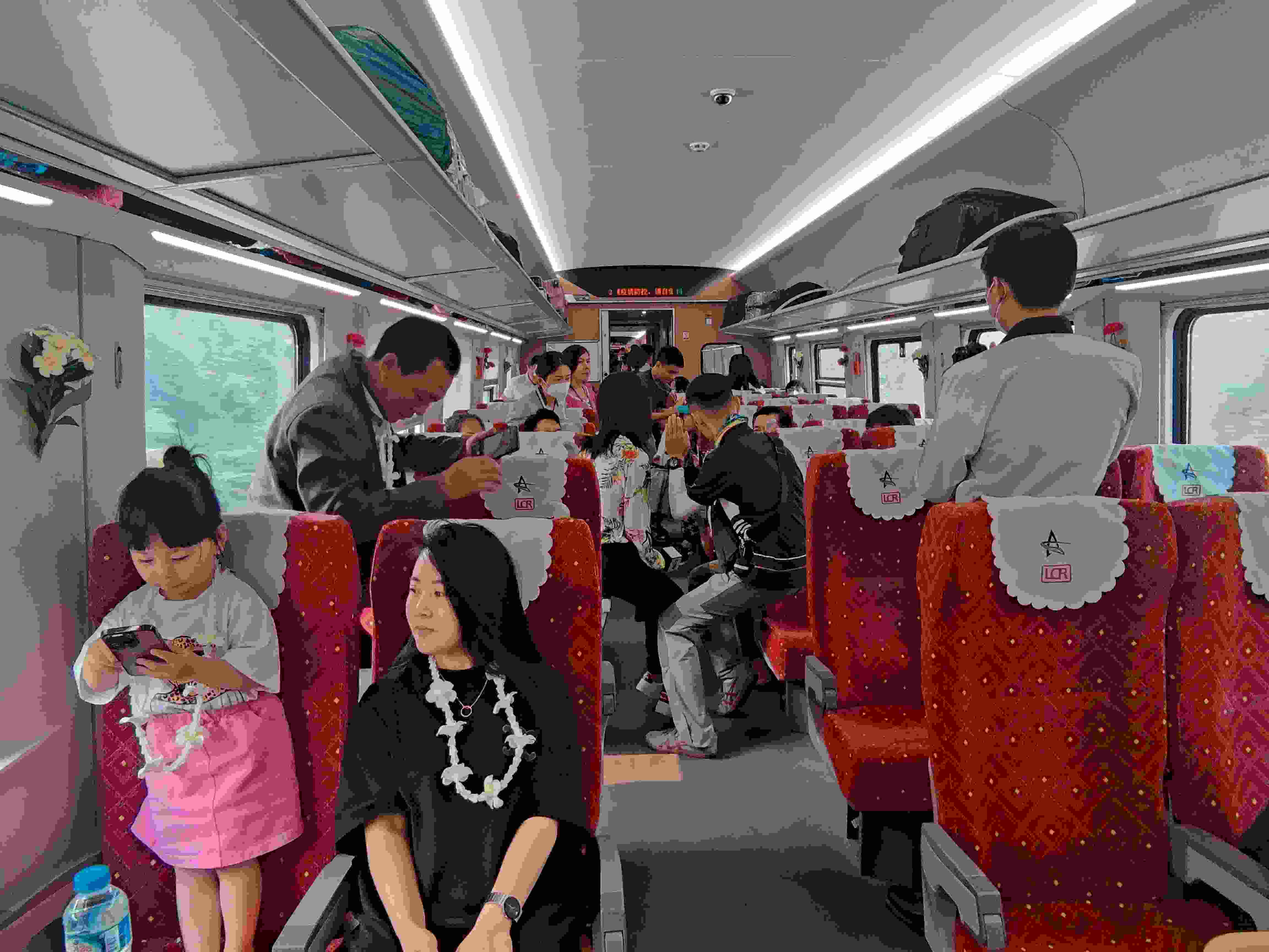 擔當跨境客運服務(wù)的中老鐵路動車組,從昆明南始發(fā)的為采用綠色涂裝的復(fù)興號CR200J型動力集中動車組“綠巨人”,從萬象站始發(fā)的為采用紅白藍三色涂裝的“瀾滄號”。列車基于中國“復(fù)興號”動車組技術(shù)平臺,結(jié)合中老兩國自然環(huán)境、線路條件、本土文化以及跨國運營需求為中老鐵路“量身打造”,設(shè)計時速160公里,定員載客720人。( 羅春曉 )