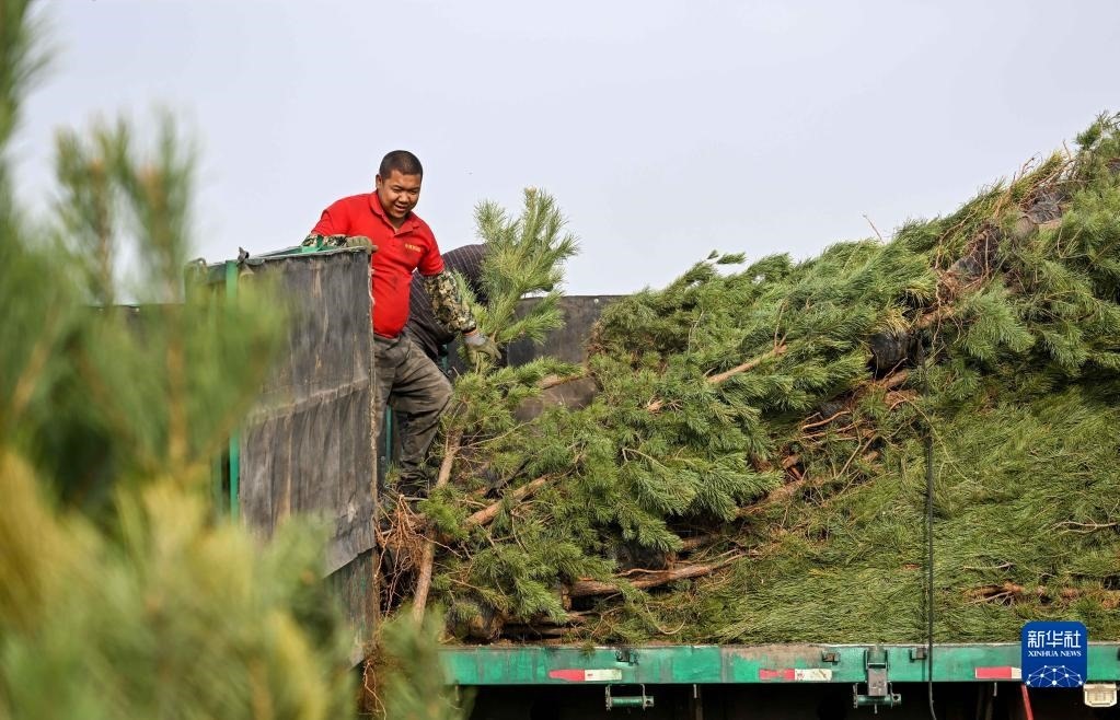4月15日,在內蒙古通遼市科爾沁左翼后旗,治沙工人在運送樹苗。