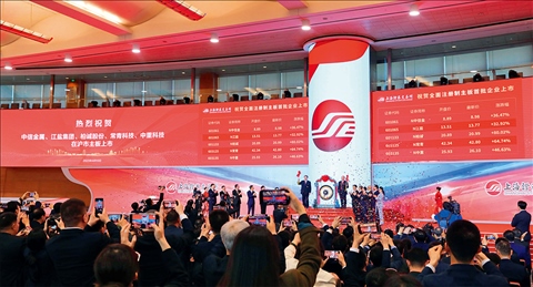 滬深交易所主板注冊(cè)制首批企業(yè)上市儀式現(xiàn)場(chǎng)(2023年4月10日攝) 方喆攝/本刊