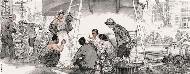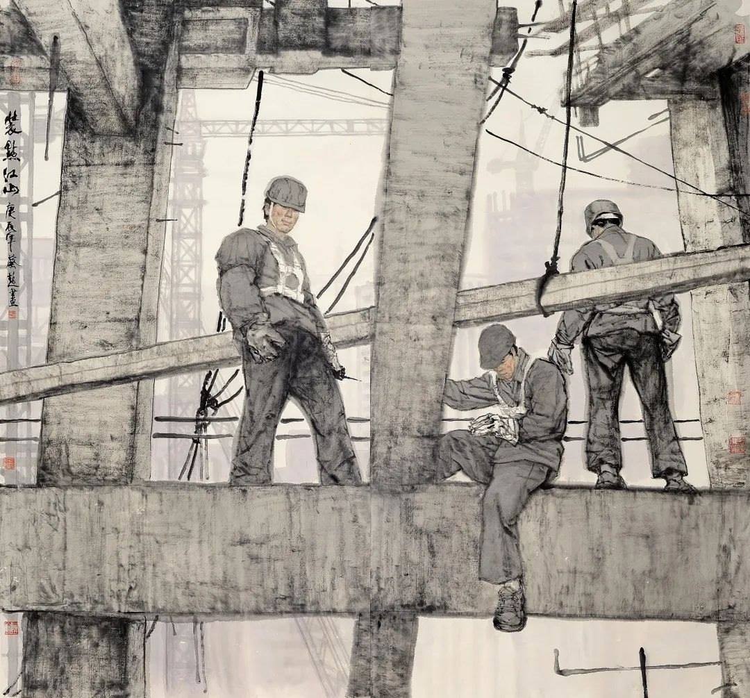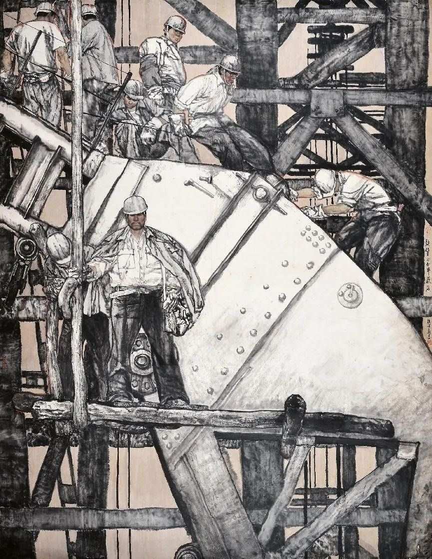 對傳統(tǒng)現(xiàn)實主義的繼承和拓展。作為一位具備卓越造型能力的人物畫家,蔡超始終堅持深入現(xiàn)實生活,他以敏銳的觀察力和理解力,以豐富的人生閱歷不斷從生活中提煉創(chuàng)作母題,發(fā)掘常人所不易察覺的藝術(shù)趣味。因此,蔡超筆下的人物總是葆有鮮活的生命和氣息,他們不是空洞的“人民”,而是牢固與地氣相接,與時代共呼吸的真正的“人民”,他創(chuàng)造了嶄新的屬于贛鄱大地的人民形象,這是蔡超對于江西現(xiàn)實主義繪畫創(chuàng)作最重要的貢獻。同時,蔡超不僅繼承了徐悲鴻、蔣兆和以來中國人物畫創(chuàng)作的優(yōu)良傳統(tǒng),更以“筆墨當隨時代”的勇氣和魄力,在工業(yè)題材領(lǐng)域樹立了令人耳目一新的繪畫范式——這是一個前無古人的偉大突破。