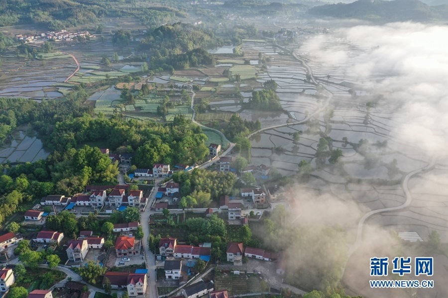 航拍安徽省宣城市旌德縣興隆鎮(zhèn)三山村,良好的生態(tài)環(huán)境吸引眾多鳥類在這里安家落戶。新華網(wǎng)發(fā)(江建興 攝)