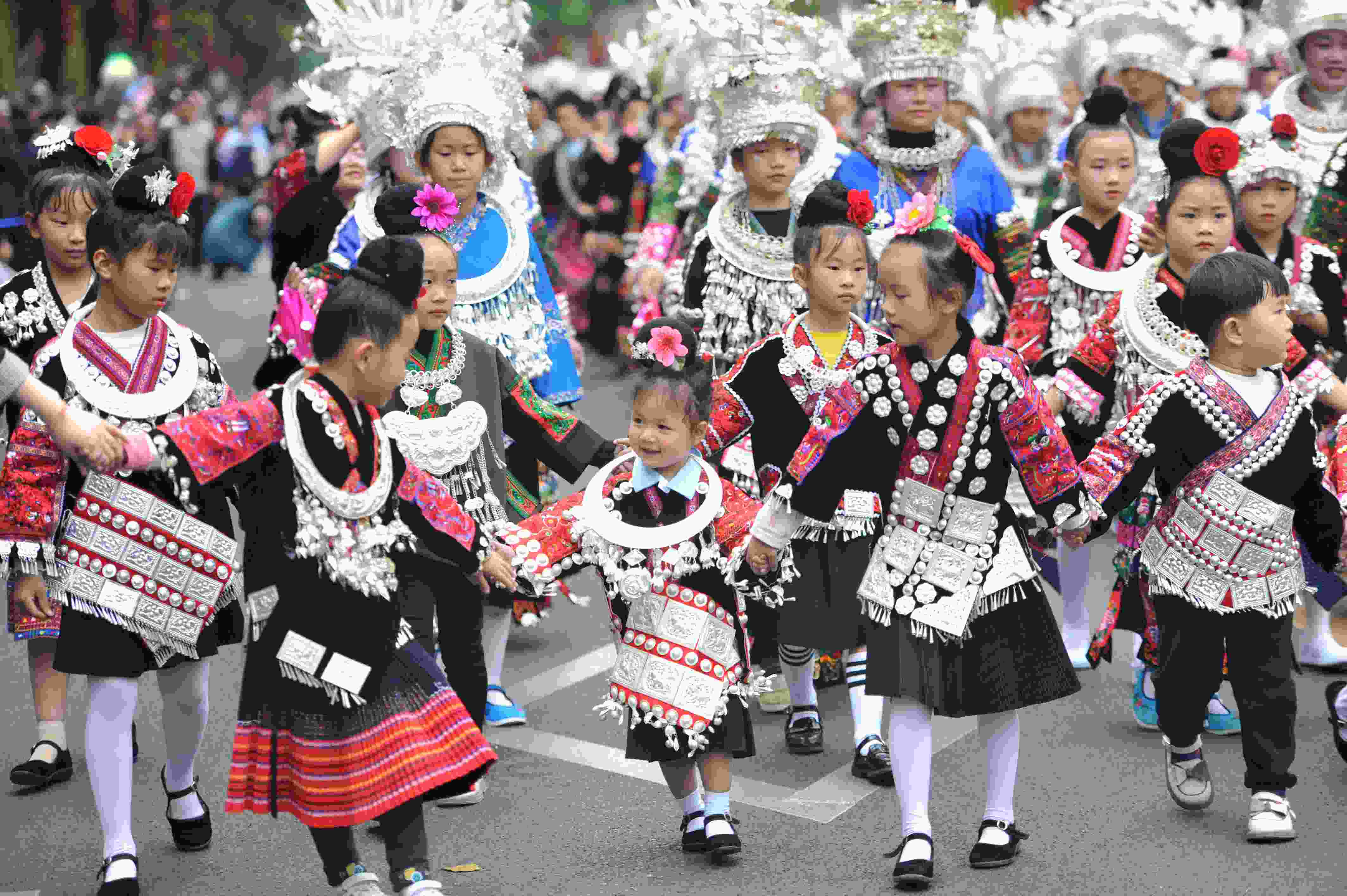 貴州省臺(tái)江縣苗族文化豐富多彩厚重,其服飾是苗族文化的重要載體,苗族女子服飾以靚麗的銀飾、精美的刺繡和獨(dú)特的審美文化內(nèi)涵而被稱(chēng)為“穿在身上的史書(shū)”,成為識(shí)別苗族9大支系的重要標(biāo)識(shí),具有極高的藝術(shù)、觀賞和收藏價(jià)值。 (寧堅(jiān))