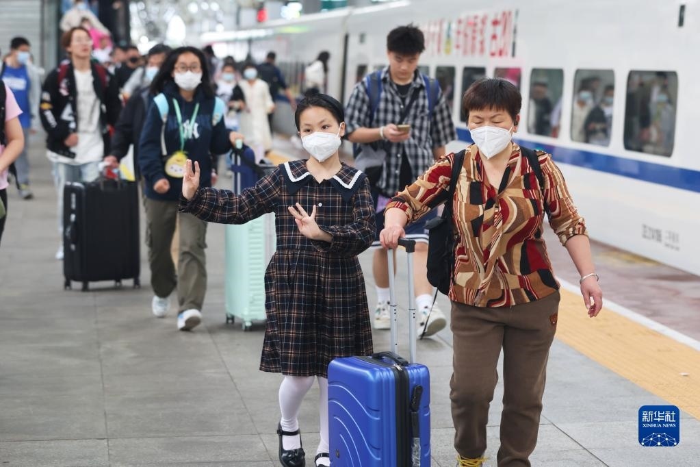 5月3日,旅客在南京火車(chē)站乘車(chē)出行。