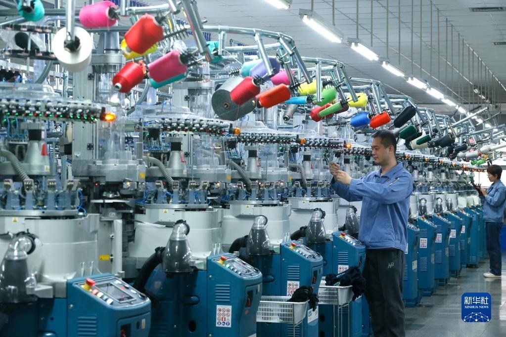 5月4日,在山東省青島市即墨區(qū)一家制襪企業(yè),工人生產出口到海外市場的產品。